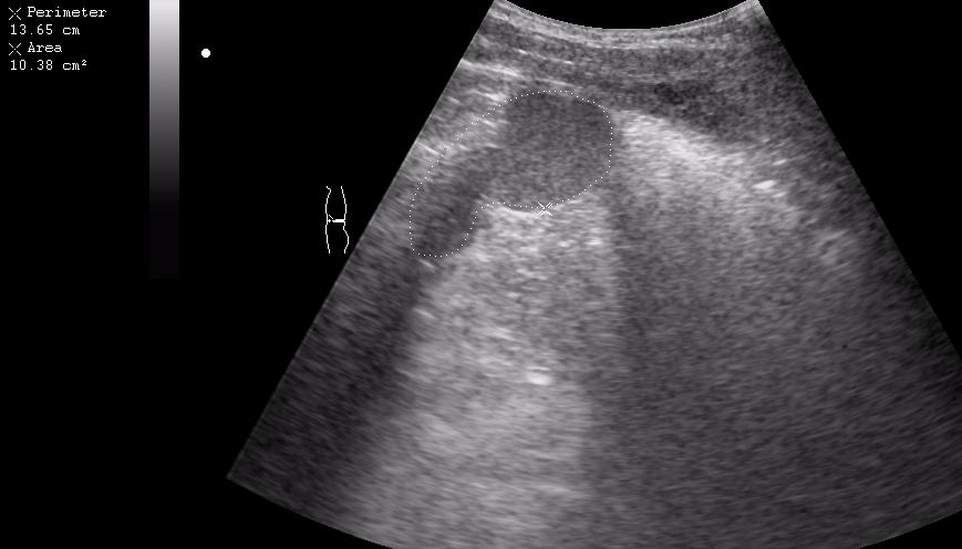 При УЗИ в эпигастральной области обнаружилось такое образование.