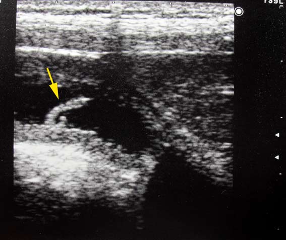 При УЗИ желчный пузырь с равномерным утолщением стенок, в просвете - акустически прозрачная желчь, имеется какое-то образование не более 10мм длиной, фиксированное к стенке пузыря и, как нам с коллегой показалось, совершающее самостоятельные движения своей свободной частью.