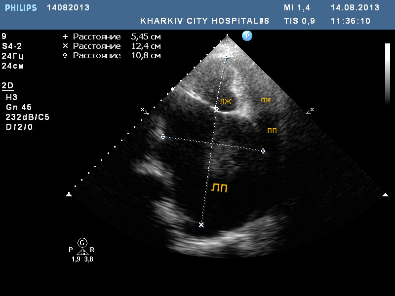 Только что смотрел пациентку 82 года. Не было много времени, потому немного видео и фото. Удивил размер левого предсердия - 10.см.
