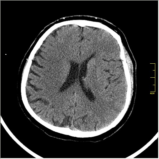 Тем более что пациенты с диагнозом направления: ОНМК, в практике кабинета КТ, это ежедневная "рутинная" работа. Я пока не буду публиковать контрольные сканы. Забегая вперёд скажу, представленный выше патологический признак, подтвердился.