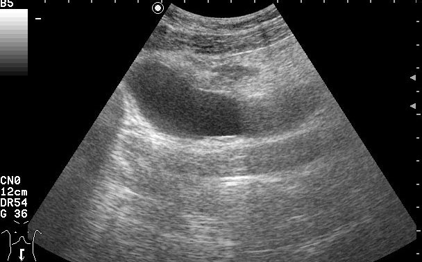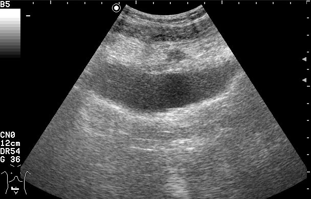 Клиническое выздоровление через 2 недели. Сонограммы мочевого пузыря через 6 недель: