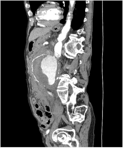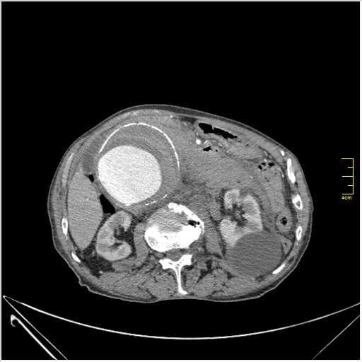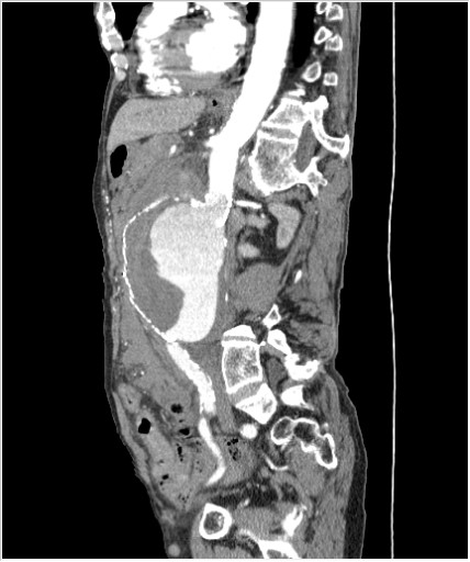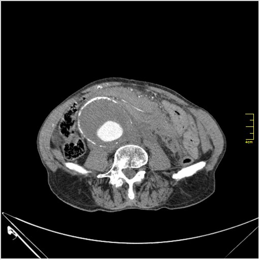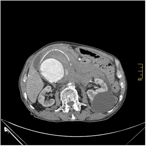 Huge abdominal aorta aneurism. Simple renal cortical cysts (Bosniak type 1).