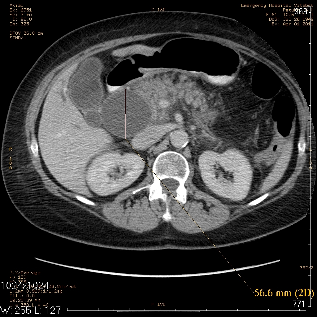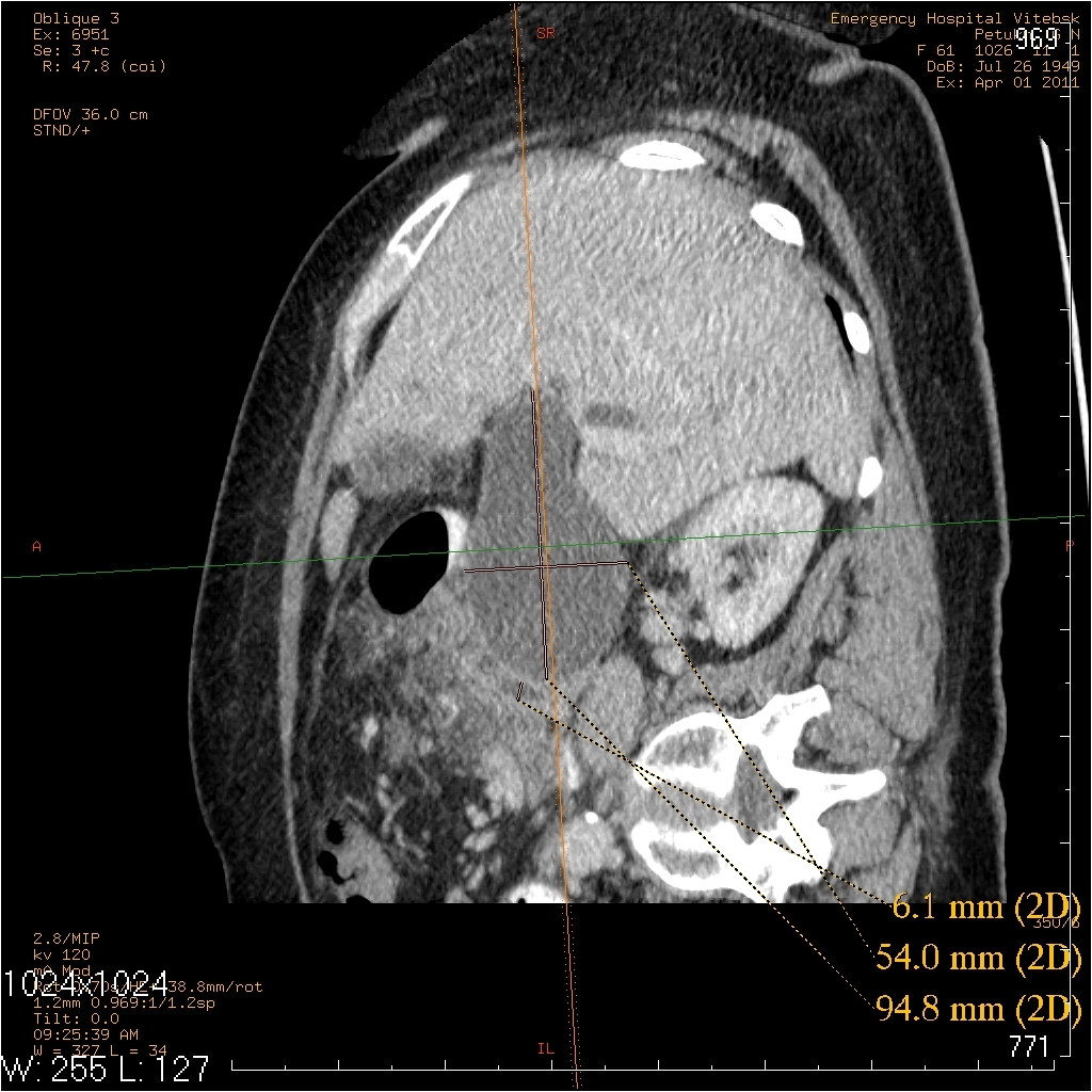 На МСКТ: Киста холедоха (грушевидной формы ~95х50мм). ЖКБ: холецистит, холедохолитиаз (в области БДС дефект наполнения просвета 12пк, расширение вирсунгова протока до 10мм). Билиарная гипертензия. Отёчный панкреатит, парапанкреатит.