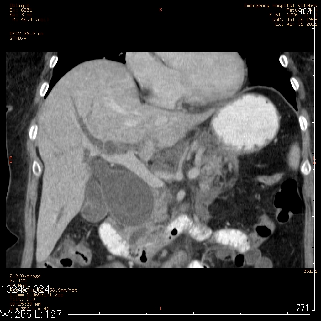 жалобы на периодические боли в правом подреберье, желтушность кожных покровов. считает себя больной в течении 2лет, когда впервые появились боли в правом подреберье. госпитализирована 25.03., 31.03. произведено МСКТ, реконструктивная операция 31.03.