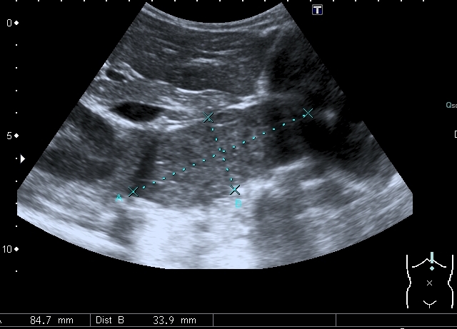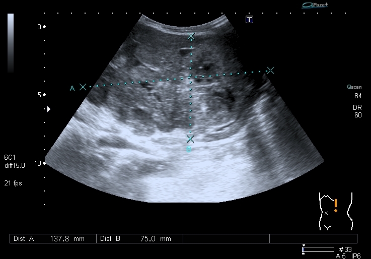 Ребёнок действительно до этого не обследовался, в течение недели лечил дома бронхит, был направлен в стационар участковым педиатром, который обнаружил увеличенную печень (действительно край выступает из - под рёберной дуги ~ на 4 см) и селезёнку (пропальпировал образование в левой половине брюшной полости) . У ребёнка при поступлении - явная кахексия. Родители привыкают к виду больных детей - у меня в архиве есть пара исследований с объёмными образованиями брюшной полости, занимающими до половины её объёма. Живот у таких детей - явно как гора, но родителям он кажется нормальным.