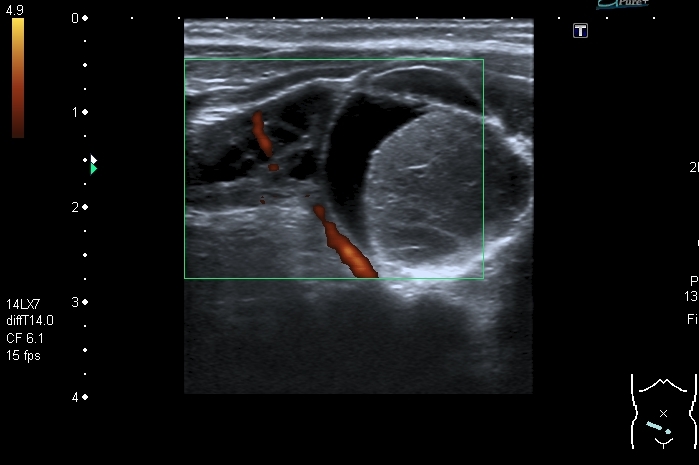 На УЗИ справа от мочевого пузыря - солидно - кистозное образование около 3 см. Образование прилежит к правому яичнику, который визуально не изменён, но смещается относительно его при движениях брюшной стенки Относительно яичника образование гиповаскулярное Выставил диагноз объёмного образования полости таза (дифференцировать энтерокистому и дермоид). Не думаю, что образование исходит из яичника, поэтому стартую тему в гастроэнтерологических исследованиях.