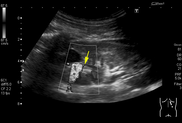 Полость в врехнем полюсе, но на Фрейли не похоже - нет сосуда на ЦДК под полостью. Была мысль о дивертикуле чашечки, будем дообследовать путём экскреторной урогфии, изображения выложу.KapustinSV писал(а):Cлева "голова" или справа?