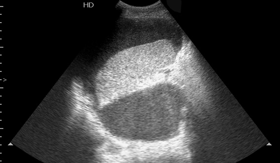 При УЗИ в области ворот селезенки/хвоста панкреас определяется жидкостное образование, переходящее в поддиафрагмальное пространство и заполненное акустически непрозрачной, мутной жидкостью.