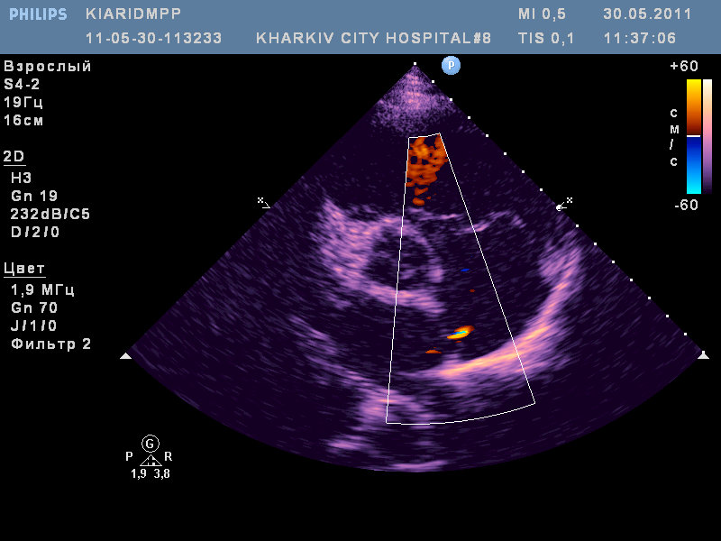 ВПС- высокий дефект межпредсердной перегородки (типа sinus venosus) с наличием аневризмы межпредсердной перегородки и сбросом слева-направо; сеть Киари.