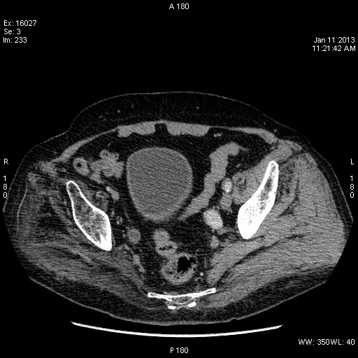 Пожилой человек с аневризмой брюшного отдела аорты.