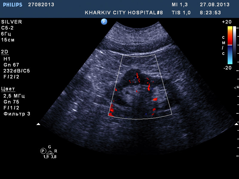 Сосудистый рисунок сохранен на сонограммах 1 и 2.