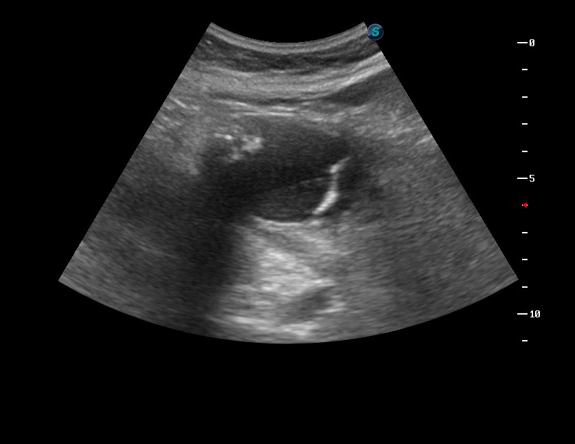 Учитывая плотную стенку, эхогенный осадок и изогнутые линейные структуры,как-то ничего другого кроме эхинококка в голову не приходит.