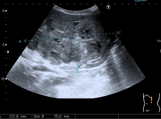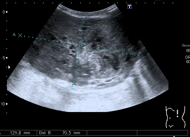 Ребёнок действительно до этого не обследовался, в течение недели лечил дома бронхит, был направлен в стационар участковым педиатром, который обнаружил увеличенную печень (действительно край выступает из - под рёберной дуги ~ на 4 см) и селезёнку (пропальпировал образование в левой половине брюшной полости) . У ребёнка при поступлении - явная кахексия. Родители привыкают к виду больных детей - у меня в архиве есть пара исследований с объёмными образованиями брюшной полости, занимающими до половины её объёма. Живот у таких детей - явно как гора, но родителям он кажется нормальным.