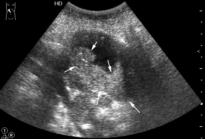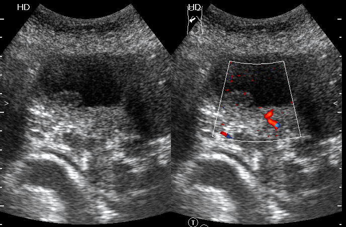 Женщина - пенсионерка. Жалобы скудные, дискомфорт в правом подреберье.