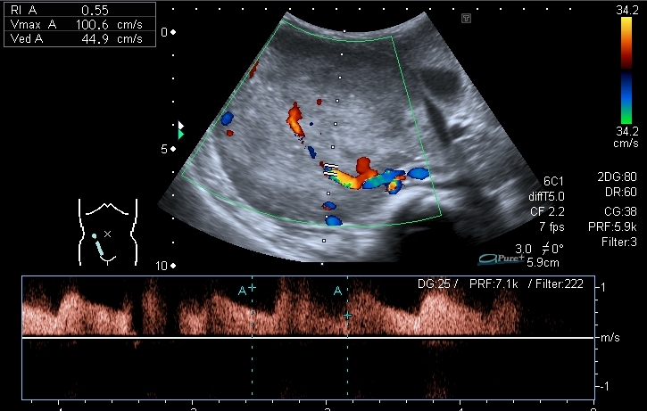 При ЦДК - образование васкуляризировано, кровоток в образовании малорестриктивный.