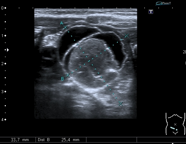 Затронул данную тему, т. к. считаю ультразвуковую семиотику образований яичников и придатков у детей мало изученной , но тем не менее достаточно важной. В моей личной практике клиницисты ставят основной вопрос: откуда образование. Если из яичника или придатков матки - лечат гинекологи. Если из кишечника - лечат хирурги. В данном случае маловероятна непосредственная связь образования с яичником из- за взаимной смещаемости, хотя кистозные тератомы м.б. на ножке. Из придатков матки в доступных мне источниках описаны два варианта образований 1) параовариальные кисты с тонкой стенкой без тканевого компонента - не похоже; 2) гидатида трубы - обычно поменьше.