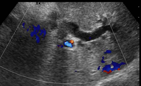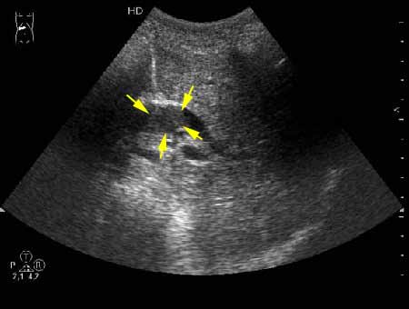 Дело в том, что в холедохе имеется нечто изоэхогенное (не знаю, видно ли это нечто на ваших мониторах). Врач УЗИ при осмотре перед поступлением в стационар на основании этой картины в заключении отметил возможность опухоли холедоха.