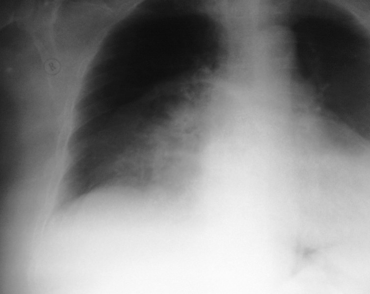 Рентгенография ОГК. Тучная пациентка с одышкой.