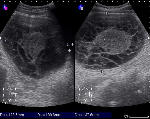 При клинической необходимости несложно выполнить тонкоигольную диагностическую биопсию образования.