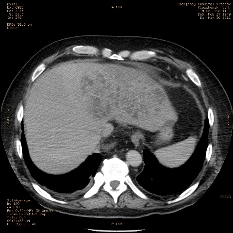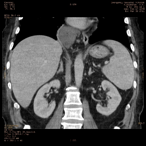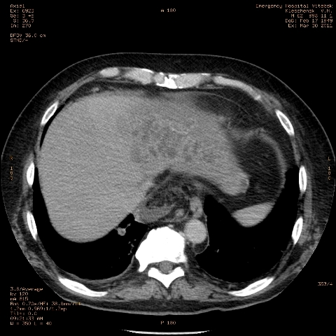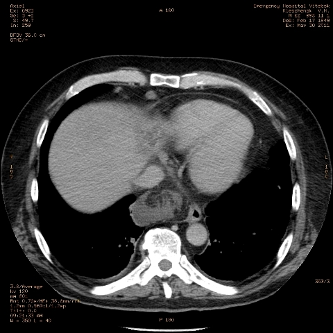 Может быть enteric duplication cyst. Как бы есть грыжа жира hiatal. И что с печенью? Мало срезов.
