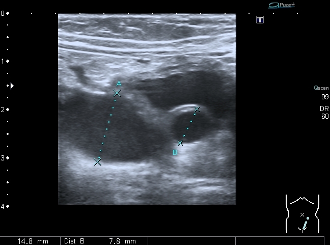 Для того, чтобы лучше составить представление об изменениях, необходимо оценивать уретероцеле не только попоперечному скану мочевого пузыря, но и по продольным сканам нижней трети мочеточника (включают интрамуральный отдел).