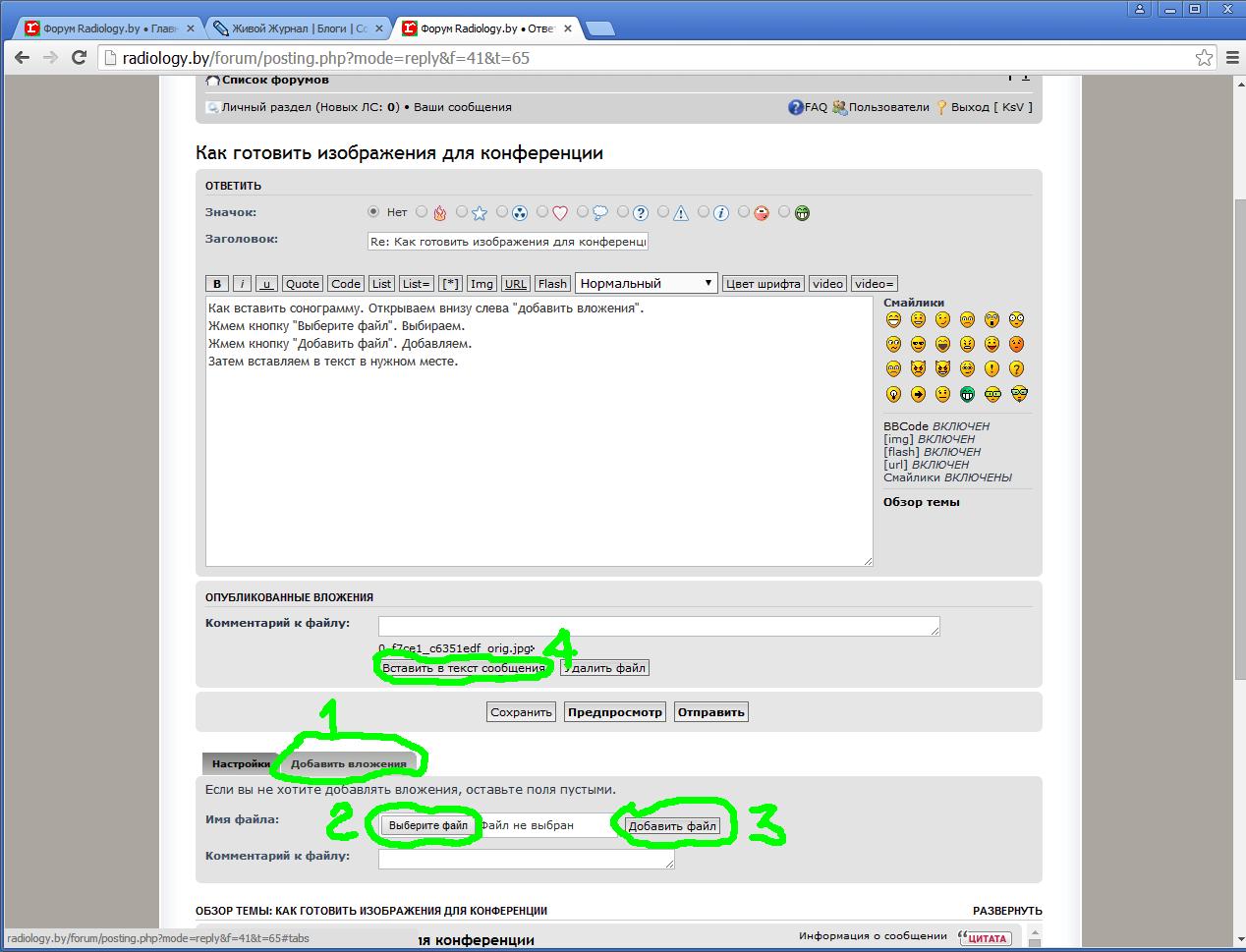 Вставить сонограмму. Открываем внизу слева "добавить вложения".